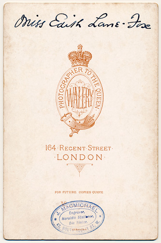 Walery - Photographer to the Queen - backside