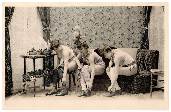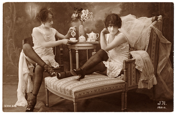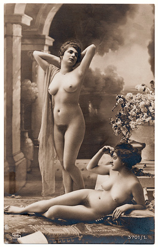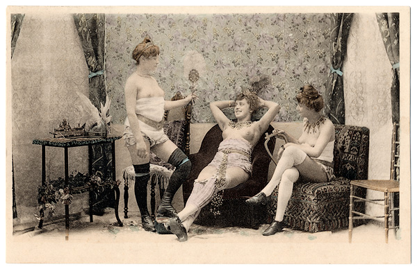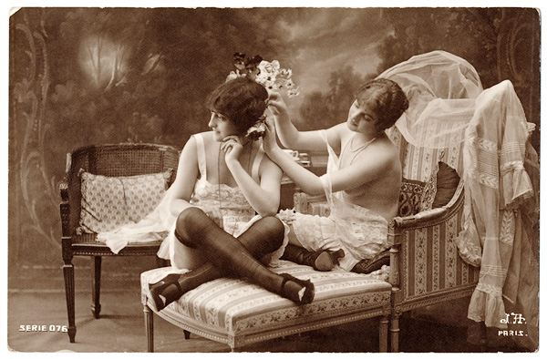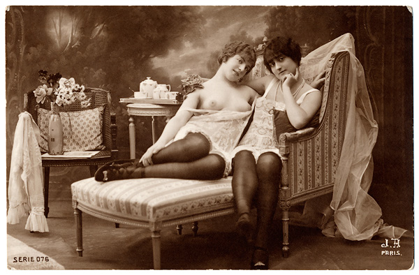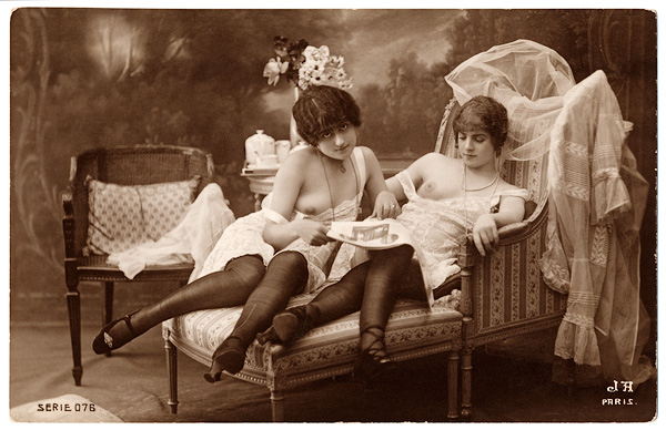 Another topic of the French Postcards are these cards with two or more models posing for the photographer. They are more rare and usually also more expensive than the usual French Postcards. We especially love the romantic cards by Jean Agélou.