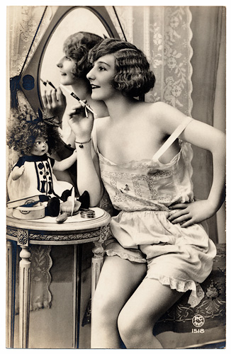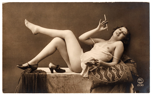 Some of the French Postcards show the models smoking cigarettes, mostly very elegant with cigarette holders.