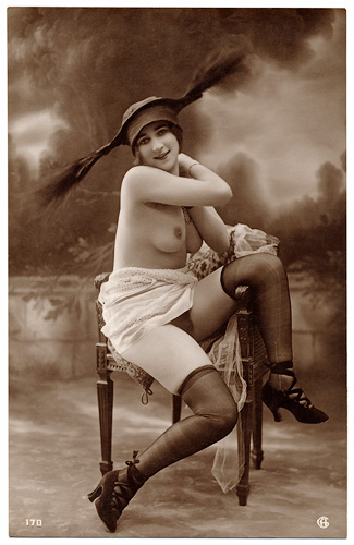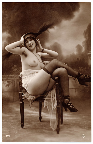 This model is quite unique with her charming smile, the long dark hair and the furry white hat that she is wearing in most of her photos. We gave her the fictitious name Miss Babette and hope to be able to find more original postcards of her.