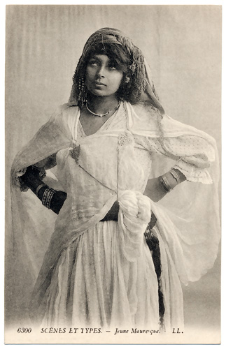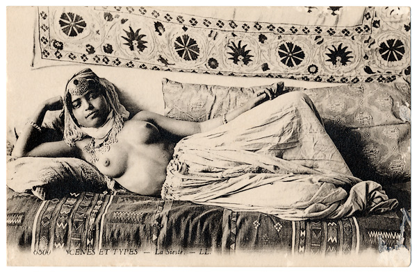 The publication of the series "Scènes et Types" is sometimes a little confusing. We find photos from the same photo-session published by "Collection Idéale P.S." or under the L.L. signature of Levy Fils & Cie. This happens also in the opposite way. In addition, the numbering of the "Scènes et Types" published by L.L. is inconsistent. An example is the number "6300". It is printed one time with the caption "La Sieste" and the other time "Jeune Mauresque", showing two different models in different photo sessions.